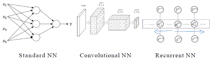 Neural Network는 Standard NN, Convolutional NN, Recurrent NN 등이 있다.
